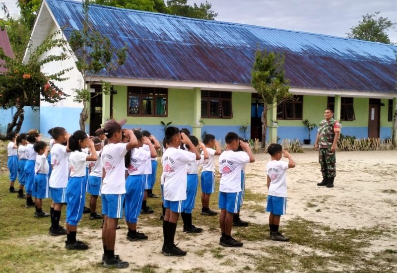 Dairi24jam || Pakpak Bharat— Babinsa Koramil 07/Salak Serda Julianto Manik memberikan pelatihan Peraturan Baris Berbaris (PBB) kepada siswa-siswi SD Negeri Cikaok Kecamatan Sitellu tali urang julu julu,Kabupaten Pakpak Bharat,Jumat,(16/06/2023).