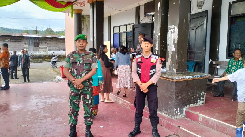 Dairi24jam || Pakpak Bharat – Babinsa Koramil 07/Salak jajaran Kodim 0206/Dairi, Serda Jonrianto Berutu Beserta Bersinergi dengan Polsek Sruweng Briptu Riki Sihombing Laksanakan Pengamanan Ibadah Kebaktian Minggu di Gereja GKPPD Salak Kota Desa Salak I, Kec.Salak.Kabupaten Pakpak Bharat, Minggu (21/04/2024)