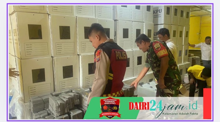 Dairi24jam| Pakpak – Babinsa Koramil 07/ Salak jajaran Kodim 0206/ Dairi, Serda Julianto Manik melaksanakan monitoring digudang logistik KPU Pemilu 2024 di Desa Salak I, Kecamatan Salak, Kabupaten Pakpak Bharat – Sumut, Senin (4/11/2024).