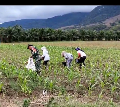 Dairi24jam ||Tanah pinem – Dalam rangka mensukseskan program Pemerintah serta untuk mewujudkan ketahan pangan, Babinsa Koramil 05 Tanah Pinem, Serda J.Simbolon ,bantu warga desa binaan memupuk tanaman jagung di Desa Liang Jering Kecamatan Tanah Pinem, Sabtu(30/9/2023).
