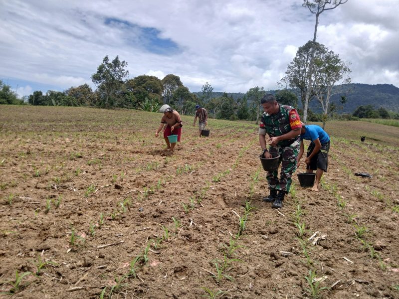 Dairi24jam || SumbulBerbagai bentuk upaya untuk peningkatan ketahanan pangan dilakukan oleh jajaran TNI.Mereka langsung turun kelapangan untuk membantu para petani seperti melakukan pemupukan tanaman jagung di desa binaan masing-masing.