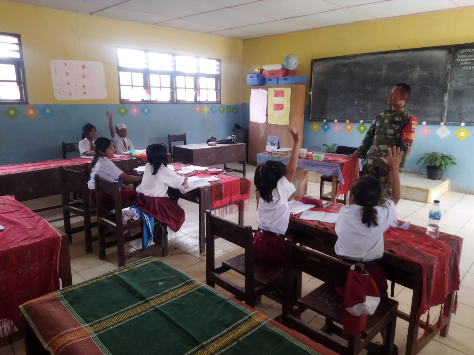 Sementara itu, Kepala sekolah mengucapkan banyak terima kasih kepada Babinsa yang telah meluangkan waktunya untuk menjadi guru sementara di kelas.