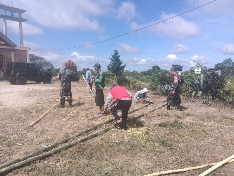 Sumbul ll Dairi24jam- Babinsa Koramil 01/Sumbul Kodim 0206/Dairi Sertu Jamansen Sinaga bersama warga masyarakat melaksanakan kegiatan gotong royong pembuatan pagar salah satu rumah Ibadah di Desa Barisan nauli Kecamatan Sumbul Kabupaten Dairi Jumat (23/9/ 2022).
