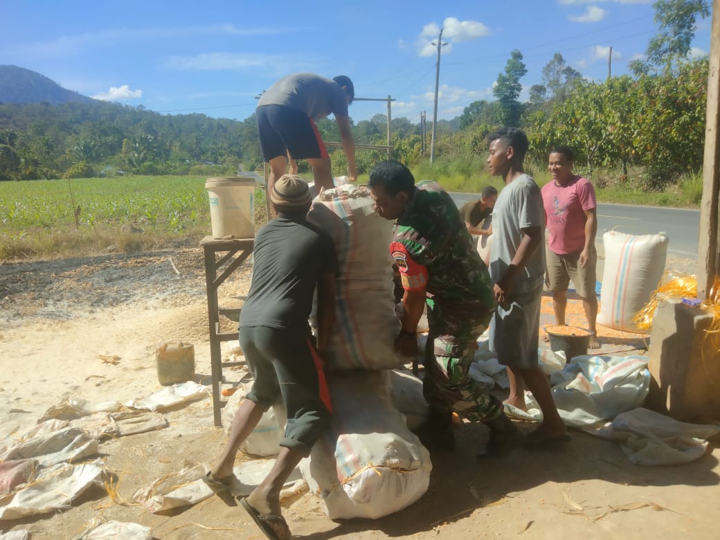Bentuk Kemanunggalan TNI Dengan Rakyat,Babinsa Bantu Petani Menggiling Jagung