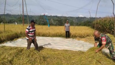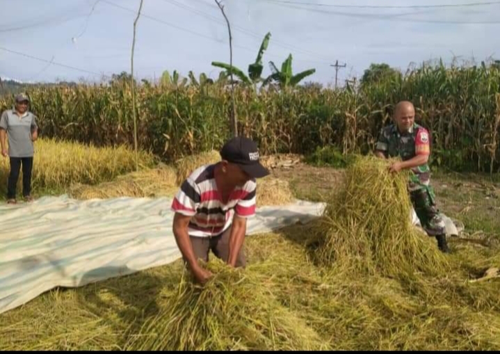 Dairi24jam || Sumbul – Babinsa Koramil 01/Sumbul Kodim 0206/Dairi Serda Jasa Ranto Simamaora melaksanakan kegiatan pendampingan Ketahanan Pangan membantu Masyarakat memanen padi di lahan Bapak Roganda Pintubatu dengan luas lahan 0,25 Ha di Desa Pegagan julu 3 Kecamatan Sunbul Kabupaten Dairi,Minggu (2/04/2023).