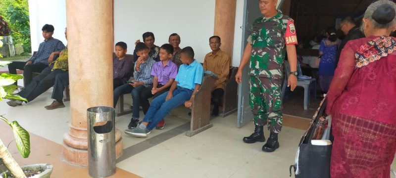 Babinsa Koramil 05/TP Laksanakan Pengamanan Ibadah Minggu di Gereja Katolik Kutabuluh