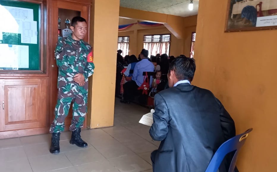 Dairi24jam || Sumbul – Babinsa Koramil 01/Sumbul Kodim 0206/Dairi,Sertu Walder Togatorop melaksanakan pengamanan gereja di wilayah binaan demi menciptakan rasa aman dalam beribadah. Hal Ini merupakan salah satu pelayanan yang selalu diberikan dan rutin tiap pelaksanaan ibadah hari Minggu di salah satu rumah ibadah yang berada di Kecamatan Sumbul Minggu (13/08/2023 )