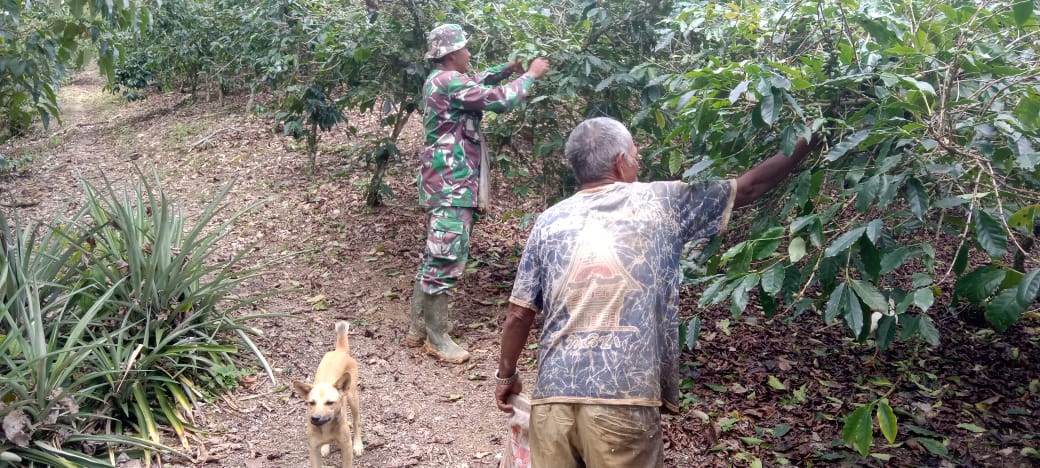 Keikut sertaan Babinsa dalam memanen hasil pertanian kopi tersebut,disambut baik oleh pemilik kebun.Hal ini merupakan salah satu bentuk kedekatan Babinsa dengan warga binaanya.