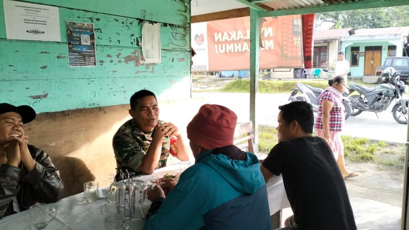Dairi24jam || Salak—Babinsa Koramil 07/Salak Jajaran Kodim 0206/Dairi,Serda Julianto Manik melaksanakan kegiatan Komunikasi Sosial (Komsos) dengan masyarakat di warung kopi Desa Salak II, Kecamatan Salak, Kabupaten Pakpak Bharat.Jumat (15/09/2023).