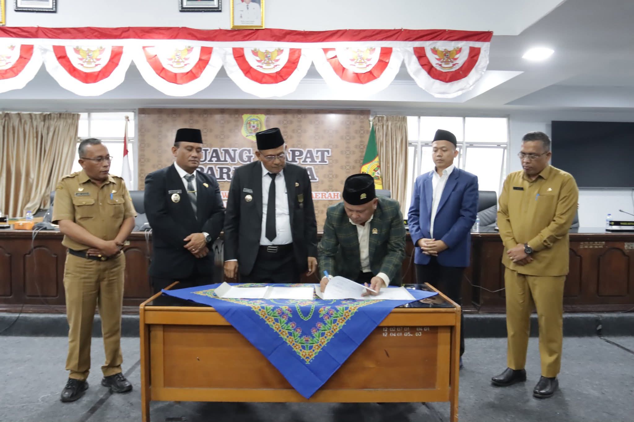 Dalam sambutannya, Bupati menyampaikan apresiasi yang tinggi atas kerja sama dan dukungan seluruh pimpinan dan anggota DPRD selama proses pembahasan hingga disetujuinya Ranperda tersebut.