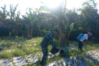 Dairi24jam || Parongil– Babinsa Koramil 06/Kerajaan jajaran Kodim 0206/ Dairi, Serda Rudy Limbong bersama petani warga Desa binaan yakni Desa Kuta Saga, Kerajaan, Kabupaten…