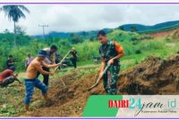Dairi24jam | Tanah Pinem – Babinsa Koramil 05/ Tanah Pinem jajaran Kodim 0206/ Dairi, Kopda. Baihaki tampak semangat melaksanakan gotong royong bersama warga masyarakat…
