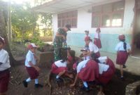 Dairi24jam||Tanah Pinem- Babinsa Koramil 05/ Tanah Pinem Jajaran Kodim 0206/Dairi Kopda Baihaki, mengajak Murid SD Negeri 030442 Pamah Kecamatan Tanah Pinem melaksanakan Kebersihan…