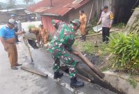 Dairi24jam-Tanah Pinem – Babinsa Koramil 05 Tanah Pinem Di bawah Pimpinan Danramil Letda Inf J. Simaibang melaksanakan kerja bakti pembersihan parit kanan…