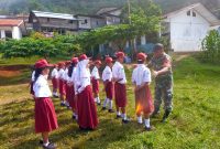 Dairi24jam || Kuta Buluh–Babinsa Koptu Ja.Ginting Koramil 05/Tanah Pinem memberikan pelatihan Peraturan Baris Berbaris (PBB) kepada siswa-siswi disekolah dasar didesa kuta buluh Kec.tanah pinem…