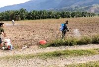 Dairi24jam || Tanah pinem– Babinsa Koramil 05/Tanah pinem Serda J Simbolon membantu petani penyemprotan gulma dan hama pada tanaman jagung di lahan milik Bpk…