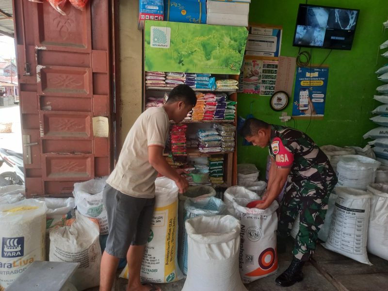 Kegiatan ini adalah bagian dari pendampingan dan pengawalan program ketahanan pangan nasional. Hal tersebut dilakukan dengan melaksanakan pengecekan pendistribusian pupuk melalui kios-kios yang ada di wilayah binaan.’Tutur Babinsa.