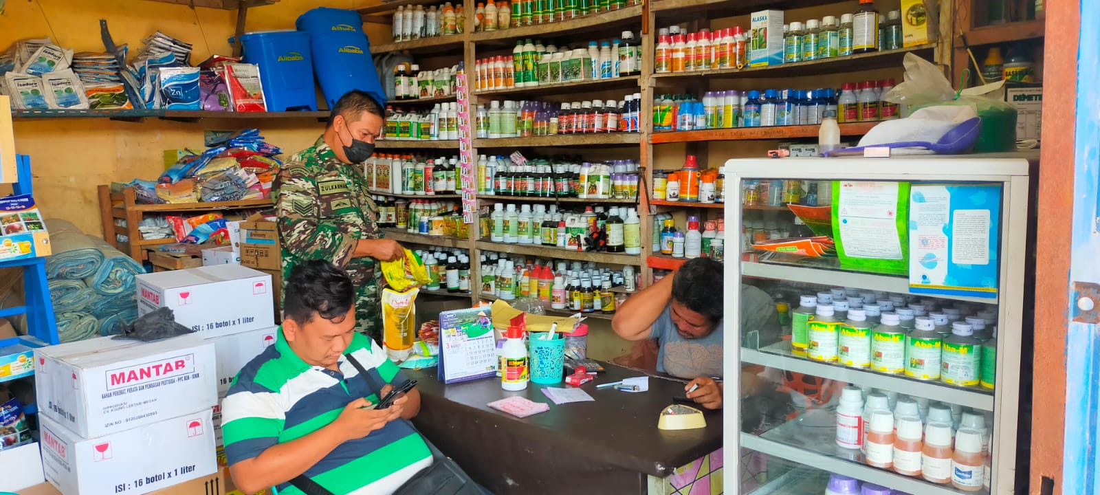 Dairi24jam || Sumbul – Bintara Pembina Desa atau Babinsa Koramil 01/Sumbul Serka Zulkarnaen Sinaga melaksanakan pengecekan rutin akan ketersediaan pupuk bersubsidi yang berada disalah satu toko pupuk di kelurahan pegagan julu 1 Kecamatan Sumbul Kabupaten Dairi Sabtu (18/3/2023).