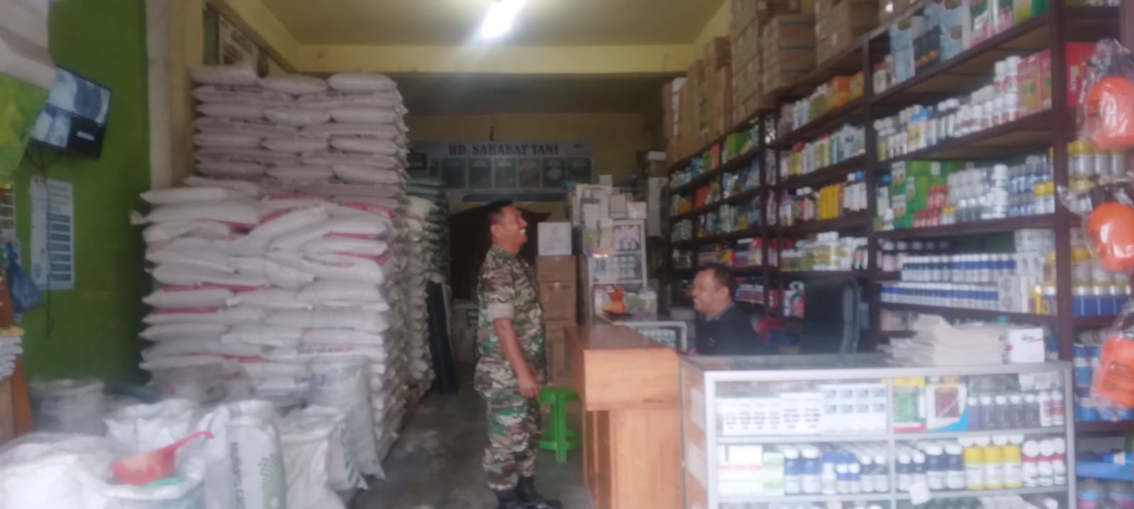 Dairi24jam || Sumbul – Bintara Pembina Desa atau Babinsa Koramil 01/Sumbul Sertu Tanger Capah melaksanakan pengecekan rutin akan ketersediaan pupuk bersubsidi yang berada disalah satu toko pupuk di kelurahan Pegagan Julu 1 Kecamatan Sumbul Kabupaten Dairi Sabtu (11/2 /2023).