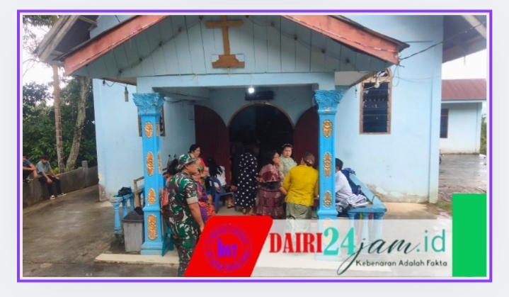 DAIRI24JAM — Demi memberikan rasa aman kepada jemaah dalam melaksanakan Ibadah, babinsa Koramil 05/Tanah Pinem Serda J.A Ginging melaksanakan pengamanan di gereja GBKP desa Kuta Buluh, Kecamatan Tanah Pinem, Kabupaten Dairi-Sumut, Minggu (20-07-2025)..