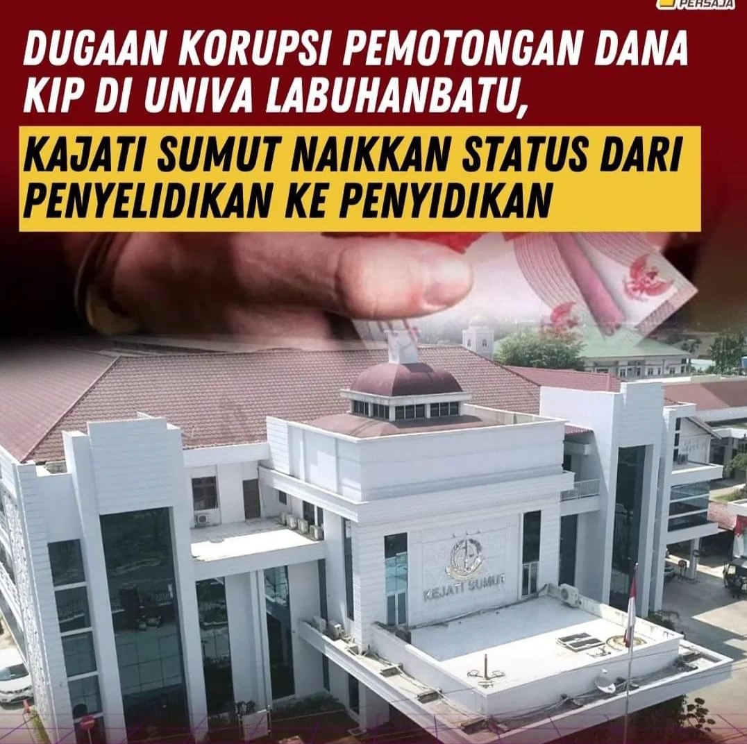 Dairi24jam|| MEDAN-Terkait dengan adanya dugaan tindak pidana korupsi Penyalahgunaan Dana Bantuan Kartu Indonesia Pintar (KIP) pada Universitas Al Wasliyah (Univa) Kabupaten Labuhanbatu Provinsi Sumatera Utara Tahun 2021, Tim Penyidik Pidsus Kejati Sumut sudah melakukan pemeriksaan dan permintaan keterangan dan menaikkan status dari Penyelidikan ke Penyidikan.
