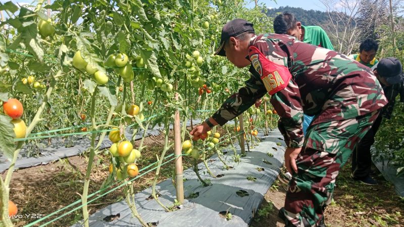 Dukung Ketahanan Pangan,Babinsa Bersama Perangkat Desa Panen Tomat Di Lahan Demplot Desa Kuta Babo