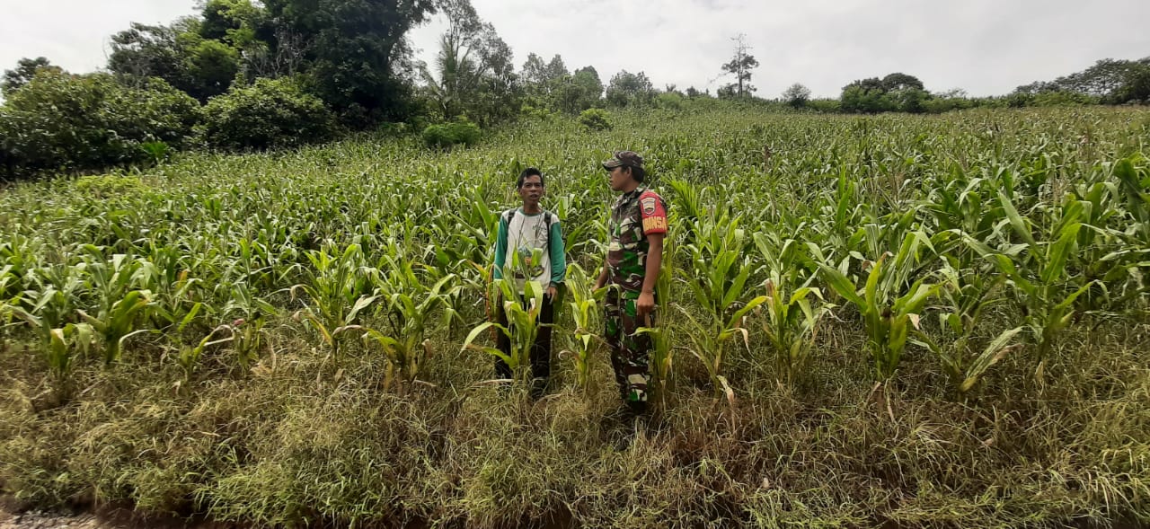 Dukung Penguatan Pangan Babinsa Koramil 05 Tanah Pinem Dampingi Petani Jagung