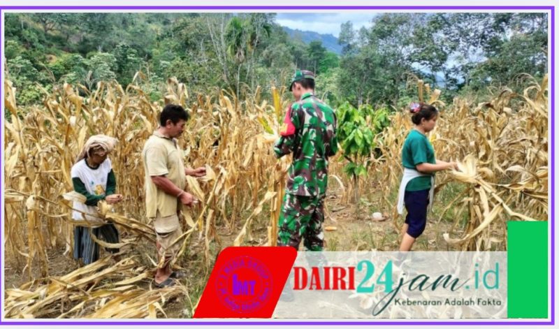 Hal ini juga menjadi dorongan personil Babinsa Koramil 05/ Tanah Pinem Kopda Jamilul dalam membantu warga binaan saat panen jagung yang dilakukan di lahan seluas 0,5 hektare milik warga desa Pasir Mbelang Kecamatan Tanah Pinem Kabupaten Dairi, Kamis(09/10/2025).