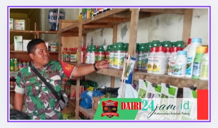 Dairi24jam || Sukaramai—Dukung program ketahanan pangan ,Sertu Sakkarias Haloho Babinsa Koramil 06/ Kerajaan melaksanakan pengecekan rutin akan ketersediaan pupuk dan obat obatan pertanian yang berada disalah satu kios pupuk di Desa Sukaramai, Kecamatan Kerajaan, Kabupaten Pakpak Bharat – Sumut, Rabu (18/12/2024).