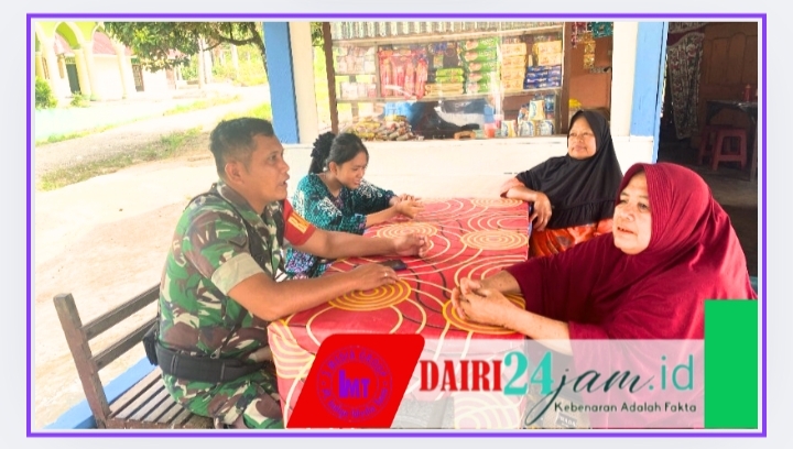 DAIRI24JAM—Babinsa Koramil 06/Kerajaan Serda Rudy Limbong melaksanakan kegiatan komsos bersama ibu-ibu warga binaan di Desa Tanjung Meriah , Kecamatan Sttu Jehe ,Kabupaten Pakpak Bharat-Sumut ,Kamis (03-04-2025).