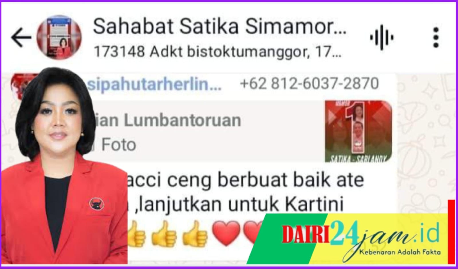 Dalam whatsApp Nurparia Lumbantoruan meneruskan ke grup ucapan “Sahabat Satika – Sarlandy mengundang kita semua untuk hadir pada acara doa, borhat borhat dan deklarasi mendukung Satika – Sarlandy bertempat di Siborongborong pada hari Sabtu – Minggu (19-20/10/2024)”.