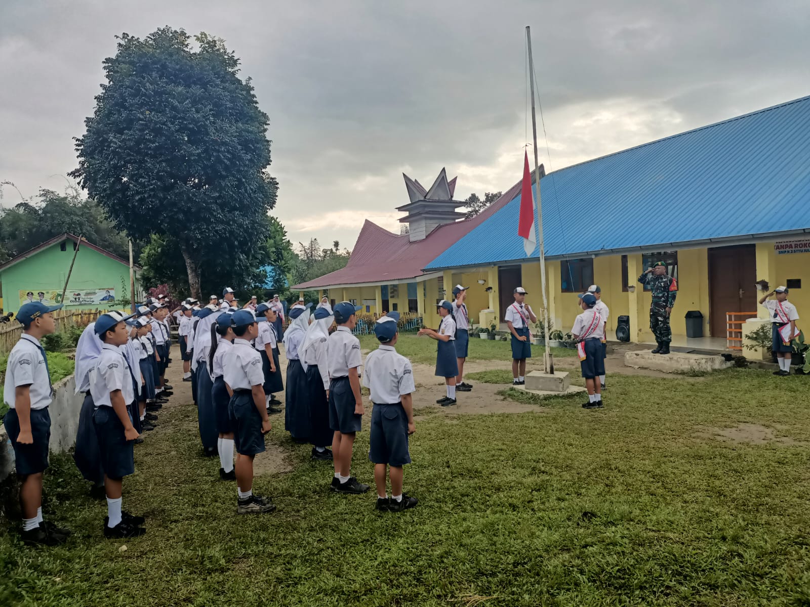 Dairi24jam || Pakpak BharatSebagai seorang Babinsa Koramil 07/salak Kodim 0206/Dairi , Serda S.Boangmanalu melaksanakan pembinaan wilayah dengan menjadi pembina dalam upacara bendera Di SMP N 3 PARDOMUAN kec Sttu julu kab pakpak bharat , Senin (06/05/2024)