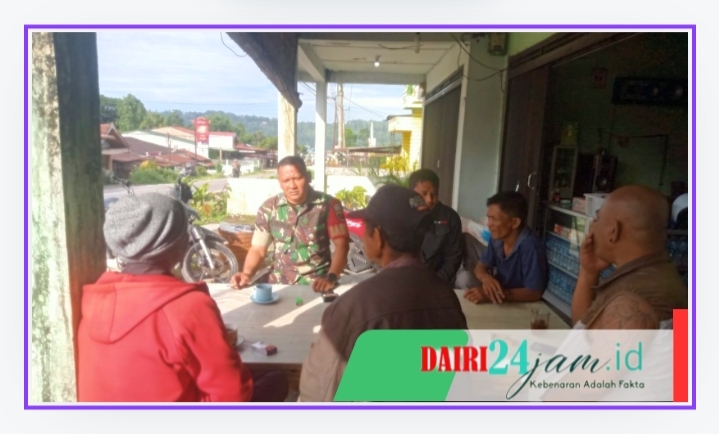 Dairi24jam | Sumbul – Personel Bintara Pembina Desa anggota Koramil 01/ Sumbul jajaran Kodim 0206/ Dairi, Sertu Adiramon Ginting melaksanakan kegiatan komunikasi sosial (komsos) dengan masyarakat Desa Kutagugung, Kecamatan Sumbul, Kabupaten Dairi – Sumut, Rabu (16/10/2024).
