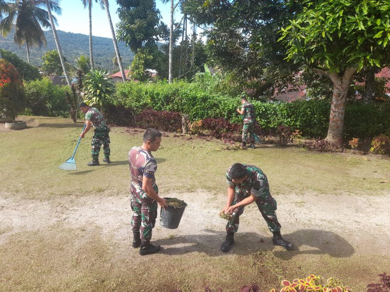 Jaga Kebersihan..!! Personil Koramil 06 Kerajaan Lakukan Pembersihan Pangkalan..