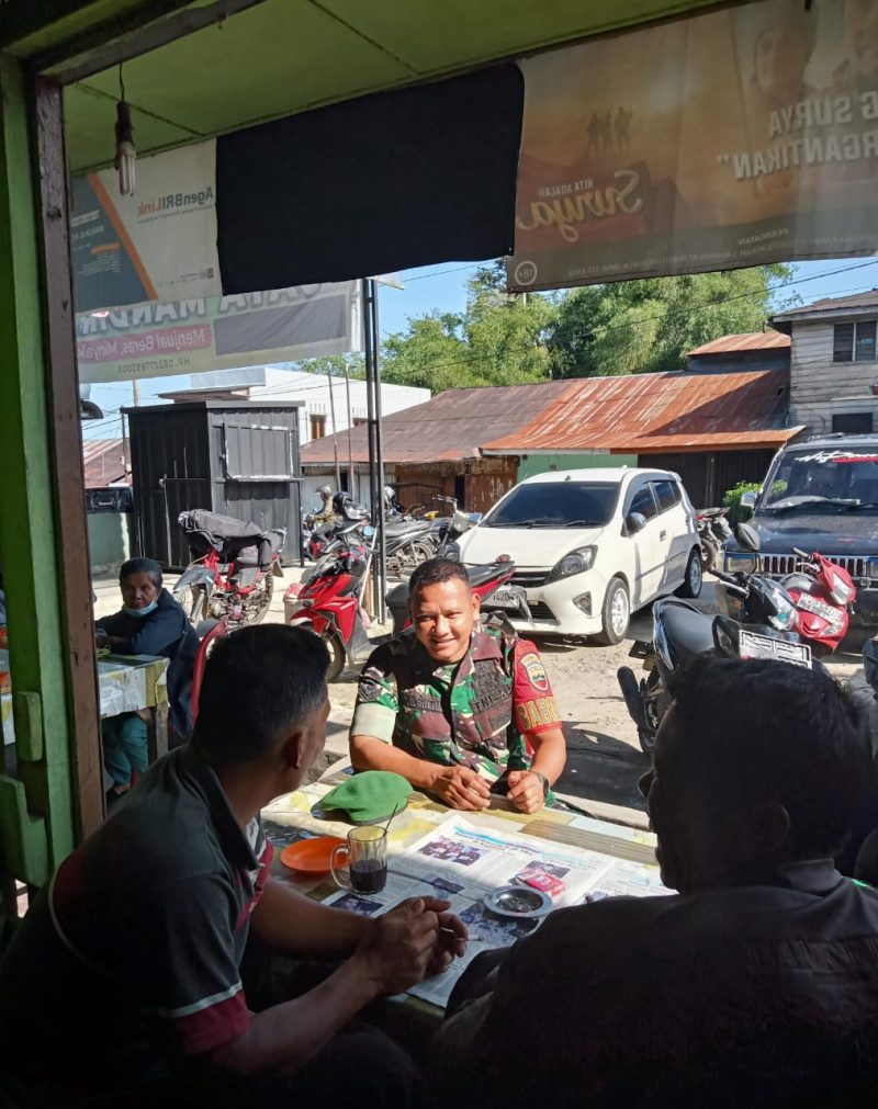 Dairi24jam || Sumbul – Personel Bintara Pembina Desa anggota Koramil 01/Sbl jajaran Kodim 0206/Dairi Sertu Adiramon ginting melaksanakan kegiatan Komunikasi Sosial (Komsos) yang dilaksanakan di salah satu warung tepatnya di kelurahan pegagan julu 1 Kecamatan Sumbul Kabupaten Dairi,Rabu (27/03/2024).