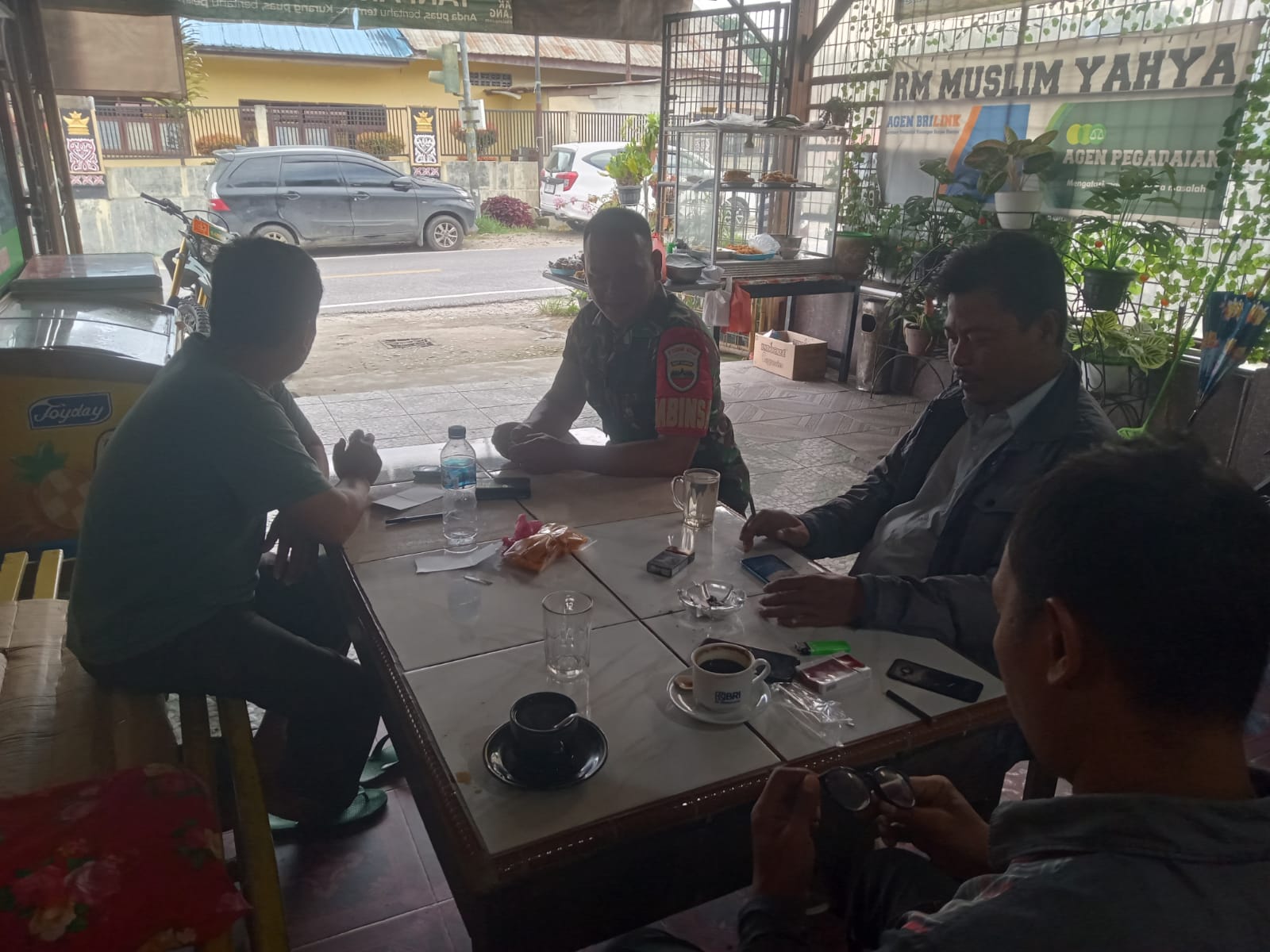 Dairi24jam || Sumbul – Personel Bintara Pembina Desa anggota Koramil 01/Sbl jajaran Kodim 0206/Dairi Sertu Adiramon Ginting melaksanakan kegiatan Komunikasi Sosial (Komsos) yang dilaksanakan di salah satu warung tepatnya di Desa Kuta Gugung Kecamatan Sumbul Kabupaten Dairi,Jumat (24/05/2024).