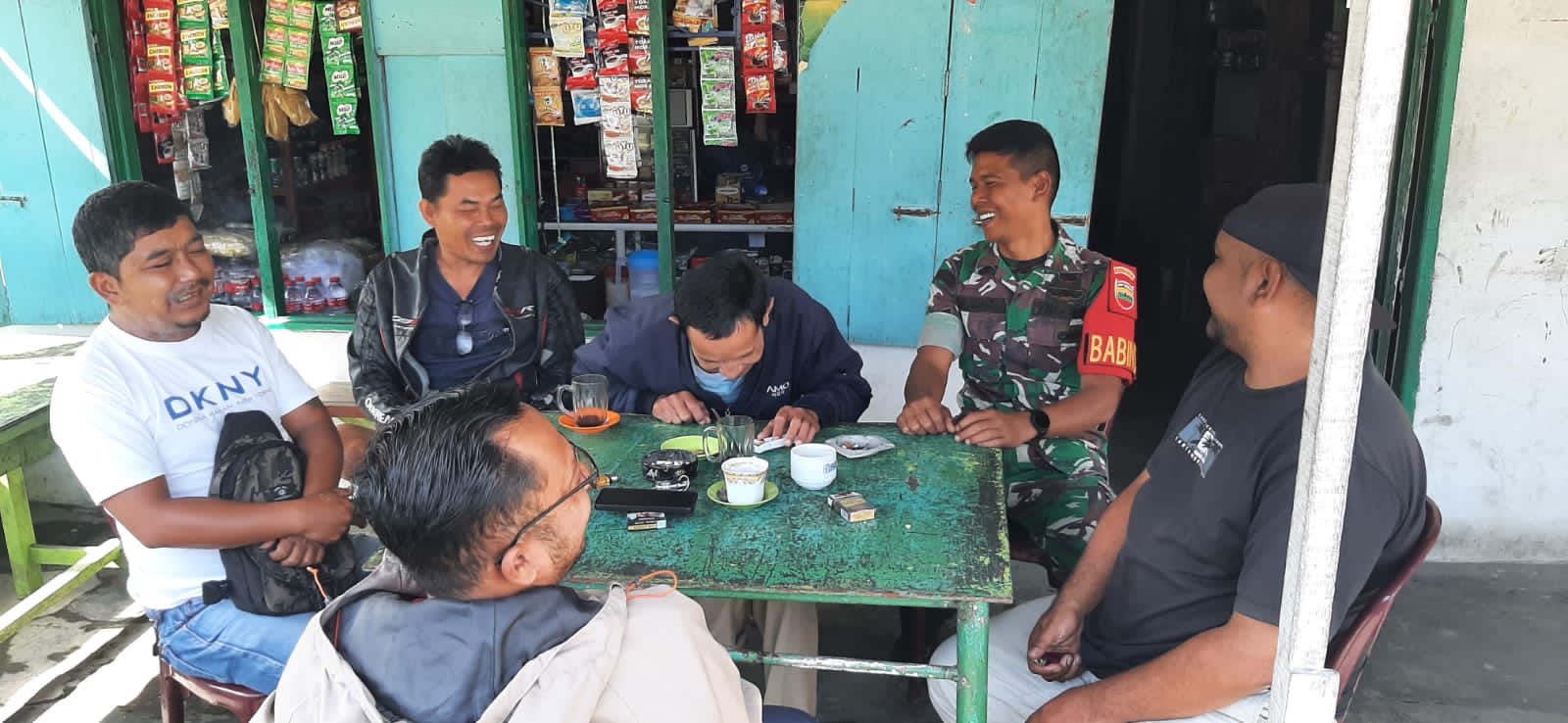 Keakraban tersebut dilihat saat warga dan babinsa sedang istirahat bersama dan bersendau gurau di warung kopi Bpk Padang