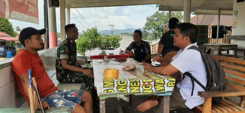 Kegiatan komsos kali ini, dilakukan Babinsa di kediaman bapak Joy Maha, yang merupakan salah satu tokoh masyarakat di desa Pasir Mbelang.