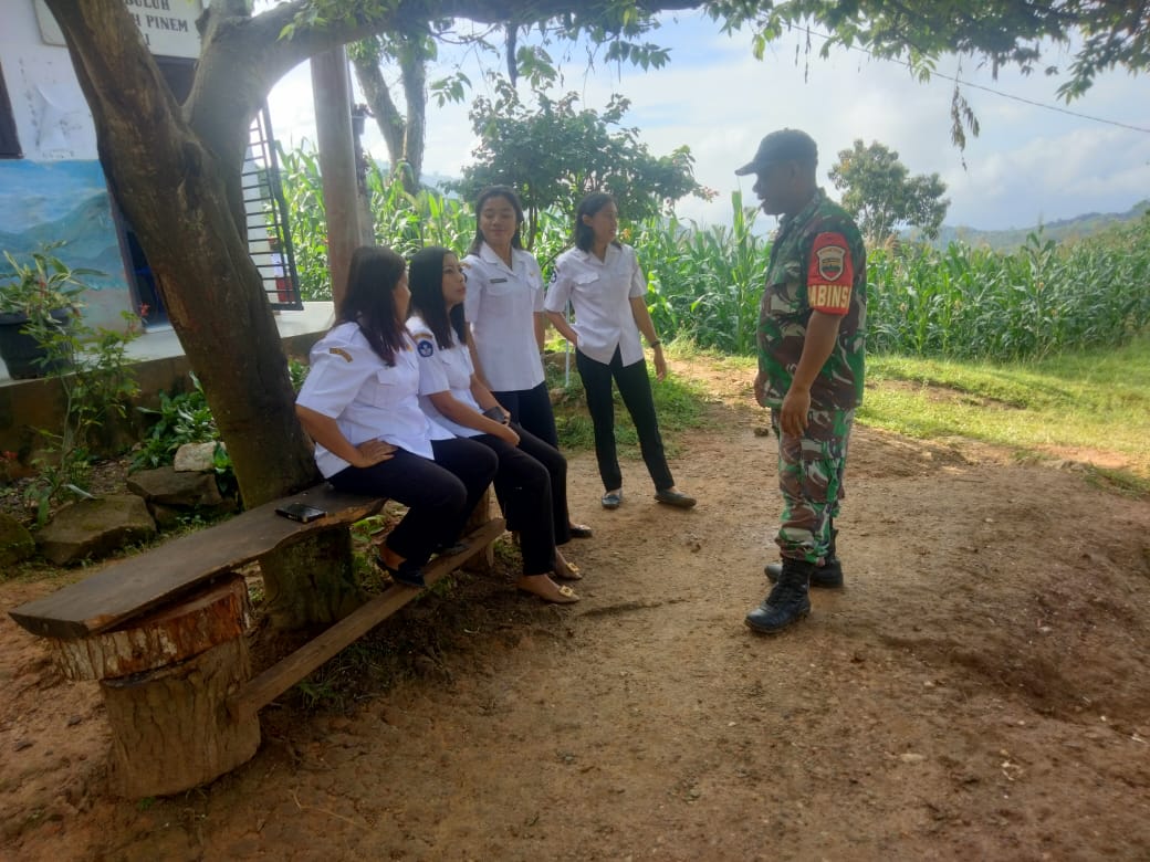 Dairi24jam || Tanah pinem – Babinsa Koramil 05/tanah pinem Koptu Ja Ginting melaksanakan Komsos bersama para guru SD N 030436 Kata buluh dalam rangka membahas proses belajar – mengajar ,