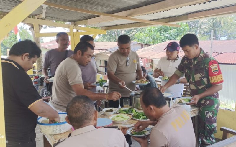 Dairi24jam|| Tanah Pinem- Dalam rangka menjalain kekompakan dan Sinergitas TNI- Polri, Babinsa Koramil 05 / Tanah Pinem jajaran Kodim 0206/Dairi Serka Syahrizal Umri makan siang bersama Personil Polsek Kuta Buluh Kecamatan Tanah Pinem Kabupaten Dairi, Senin(2/9/2024).