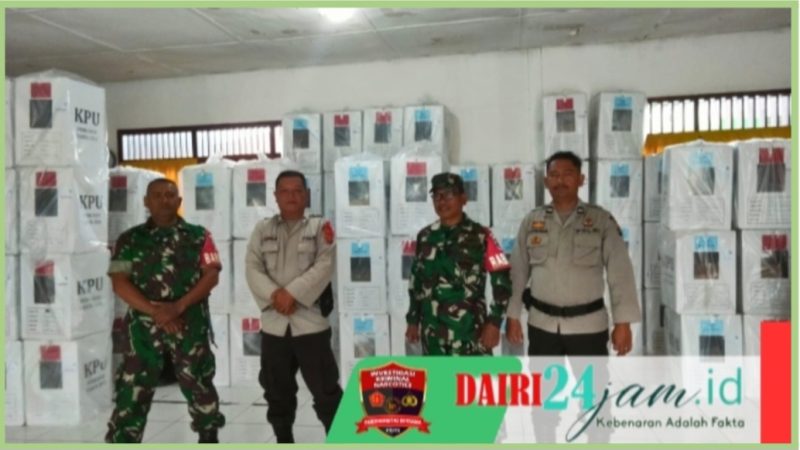 Dairi24jam | Sumbul – Babinsa Koramil 01/ Sumbul, Serda Torop Samosir bersama dengan anggota Polri terus mengintensifkan pengamanan kotak suara menjelang rapat pleno Pemilukada serentak tahun 2024 dengan bertempat di Sekretariat PPK Kecamatan Pegagan Hilir, Kabupaten Dairi – Sumut, Jumat (29/11/2024).