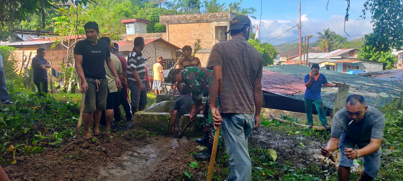 Dairi24jam || tanah PinemSertu Hasanadi Babinsa Koramil 05/Tanah Pinem melaksanakan gotong royong dengan warga binaan di desa binaan,Jumat (11-08-2023)..