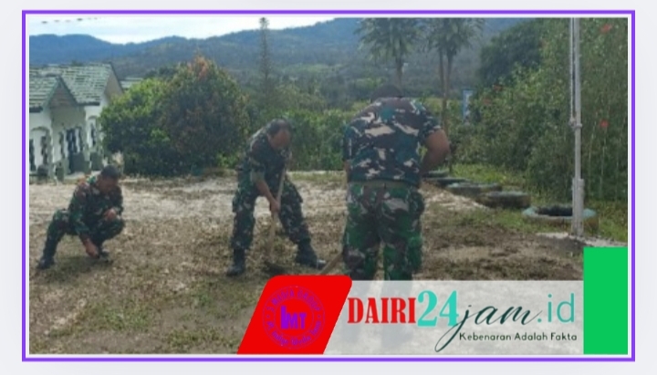 DAIRI24JAM —Demi menjaga kebersihan dan keindahan pangkalan, Personil Koramil 06/Kerajaan melaksanakan kegiatan Jumat bersih di seputaran Makoramil, Desa Sukaramai , Kecamatan Kerajaan, Kabupaten Pakpak Bharat, Jumat 04-07-2025)..