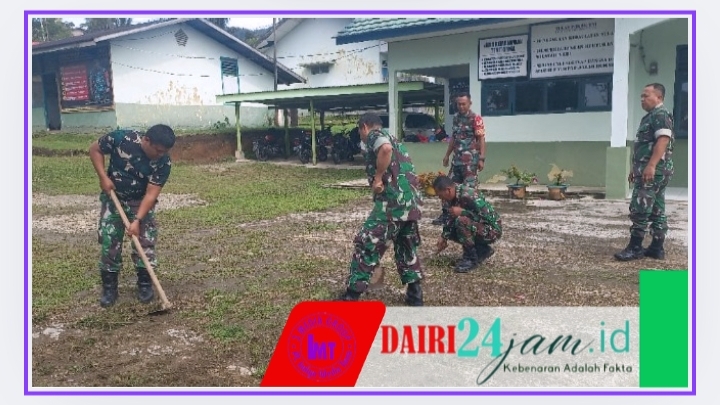DAIRI24JAM —Personil Koramil 06/Kerajaan yang dipimpin oleh Danpos Pelda Supriadi melaksanakan kegiatan Karya Bakti dalam rangka Jumat Bersih di sekitar Makoramil, Desa Sukaramai, Kecamatan Kerajaan, Kabupaten Pakpak Bharat-Sumut, Jumat (25-04-2025).