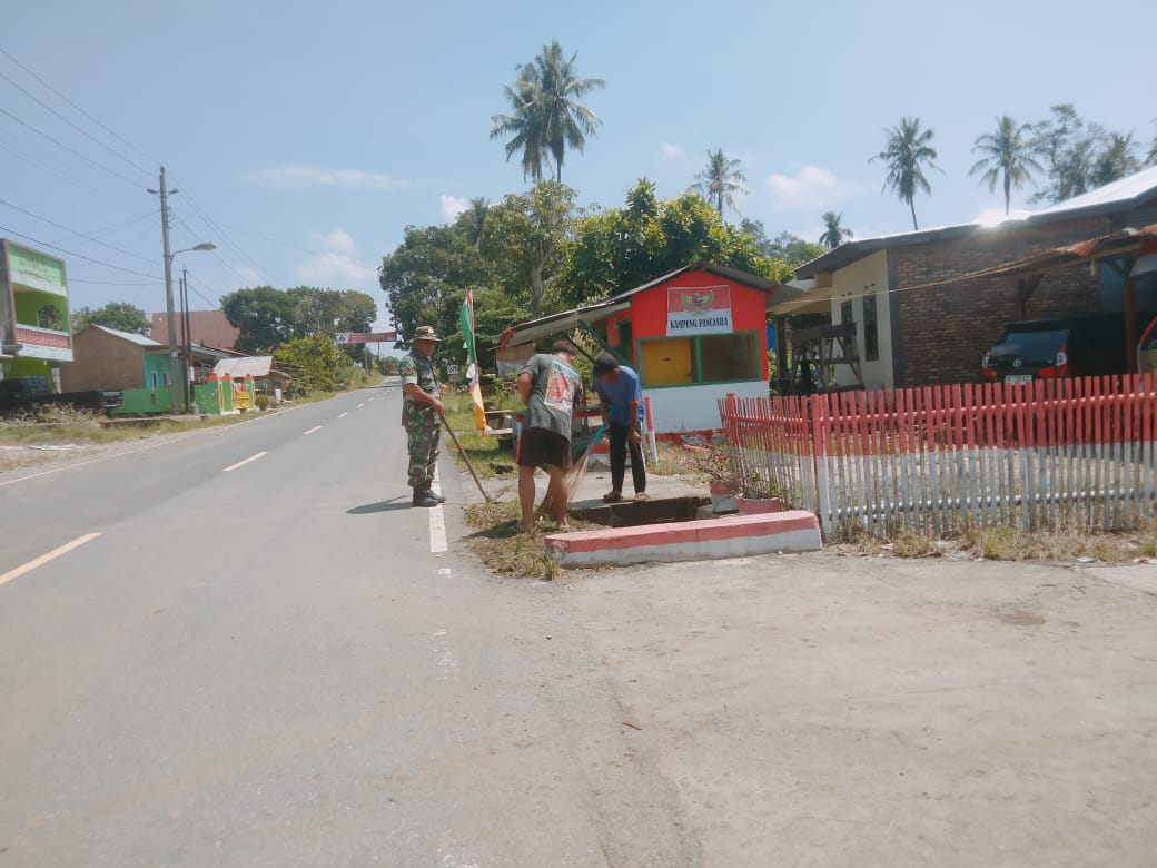Dairi24jam || Tanah Pinem—Babinsa Koramil 05/Tanah Pinem Kodim 0206/DairI Koptu JA.Ginting gotong royong bersama warga desa tanah pinem,Kecamatan Tanah Pinem,Kabupaten Dairi , Jumat (28-04-2023)..