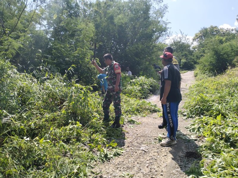 Dalam kegiatan itu, Babinsa Desa Cikaok melaksanakan kerja Bhakti bersama warga masyarakat sasaran pembersihan Rumput liar yang ada di pinggir jalan.