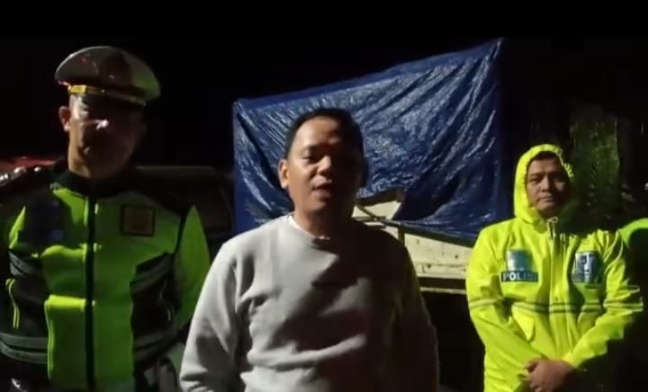 Akbp Wahyudi Rahman menyampaikan Himbauan kpd para Pengemudi Kendaraan Bermotor yg melintas agar berhati hati dijalan dikarenakan sampai saat ini situasi kondisi badan jalan masih berlumpur dan Licin.