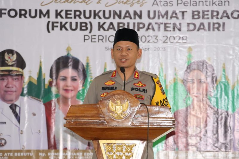 Dalam kegiatan Kapolres Dairi AKBP Wahyudi Rahman, S.H, S.I.K, M.M mewakili Forum Forkopimda memberikan sambutan dengan mengucapkan selamat kepada Forum Kerukunan Umat Beragama (FKUB) Kabupaten Dairi yang telah resmi dilantik.
