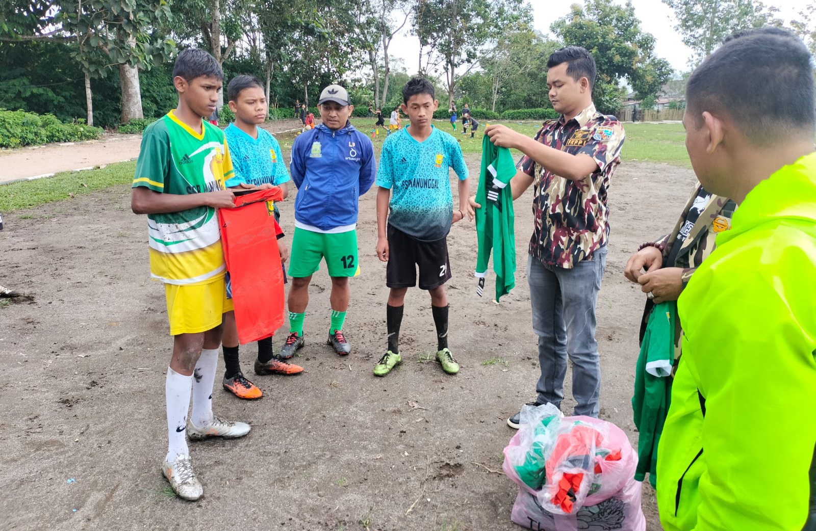 Hadir pada penyerahan Bantuan Kustum tersebut, Dandim 0206 Dairi yang di Wakili Pasi Ops Kodim 0206 Dairi Letda Inf Hernandes,Pembina Manunggal FC Peltu Haruna beserta Pelatih Manunggal FC Luhut Pasaribu.