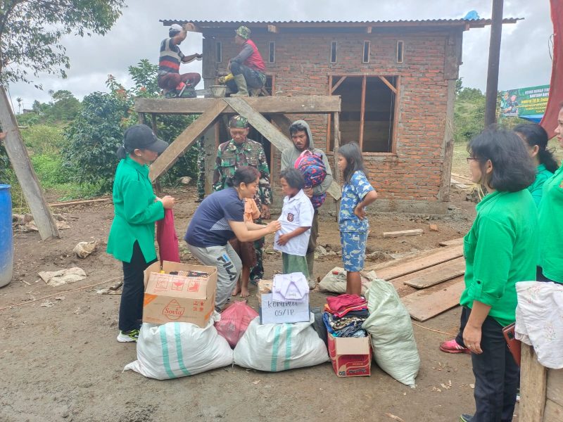 Dairi24jam || Sumbul–Ketua Persit Kartika Chandara Kirana Cabang XLII/ Kodim 0206/Dairi Ny. Nuring Ridwan Budi Sulistyawan Melalui Ibu Ketua Persit cabang 02 /Sumbul Ny. Evi IS Tarigan beserta para pengurusnya memberikan bantuan secara simbolis kepada anak dari Bapak Ridwan Sinamo yang rumah sedang dalam Perahaban di Desa Barisan Nauli Kecamatan. Sumbul Kabupaten.Dairi Senin (21/11/2022).